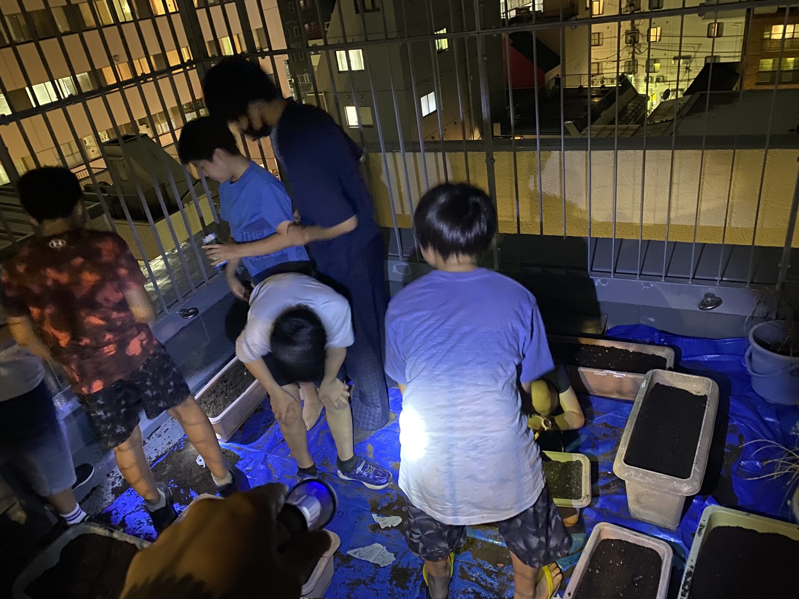 小学生の授業の後半で切り上げて、種植えの準備を行いました。