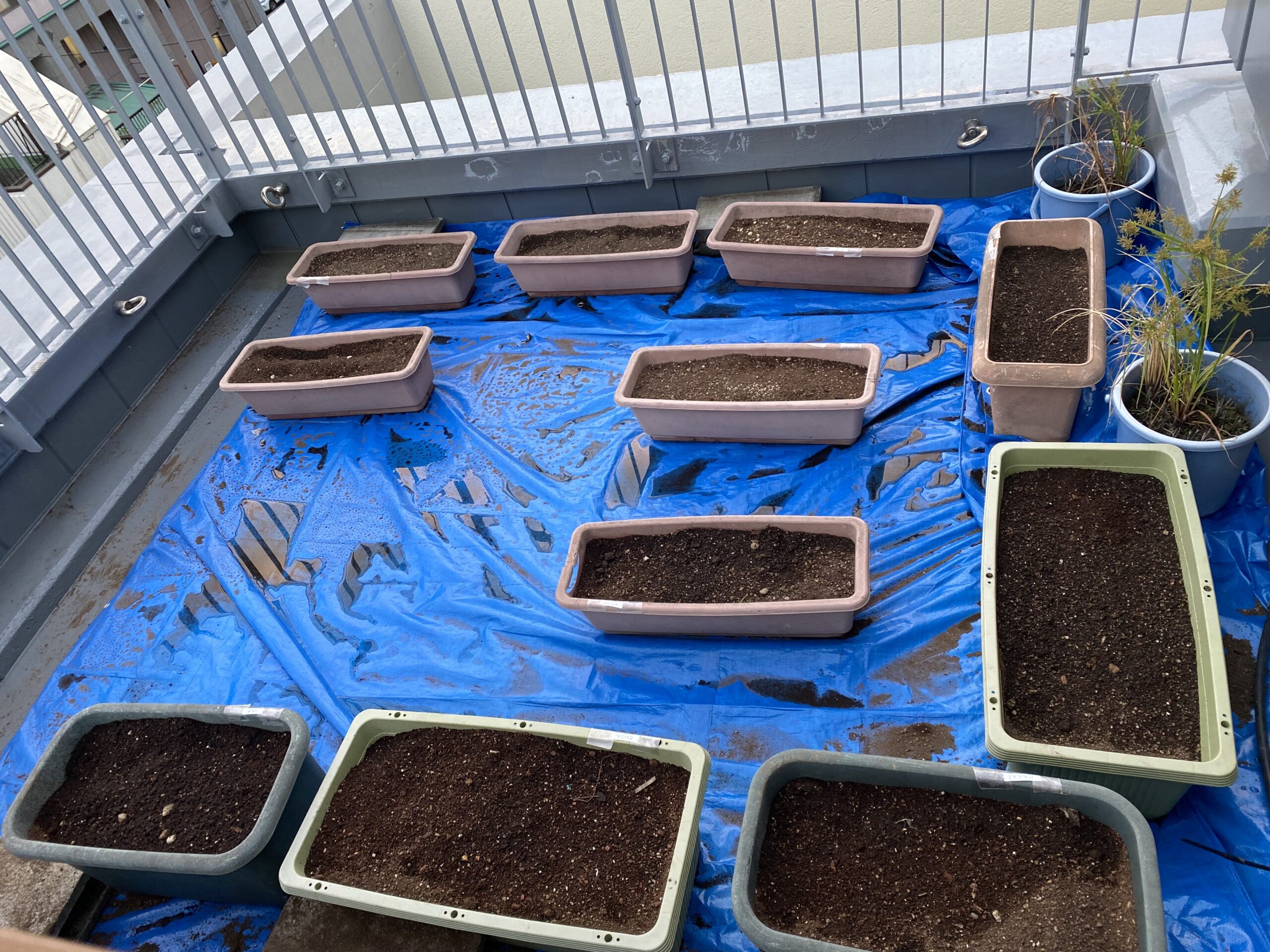 種も植えて、あとは芽が出てくれることを祈るばかり!!