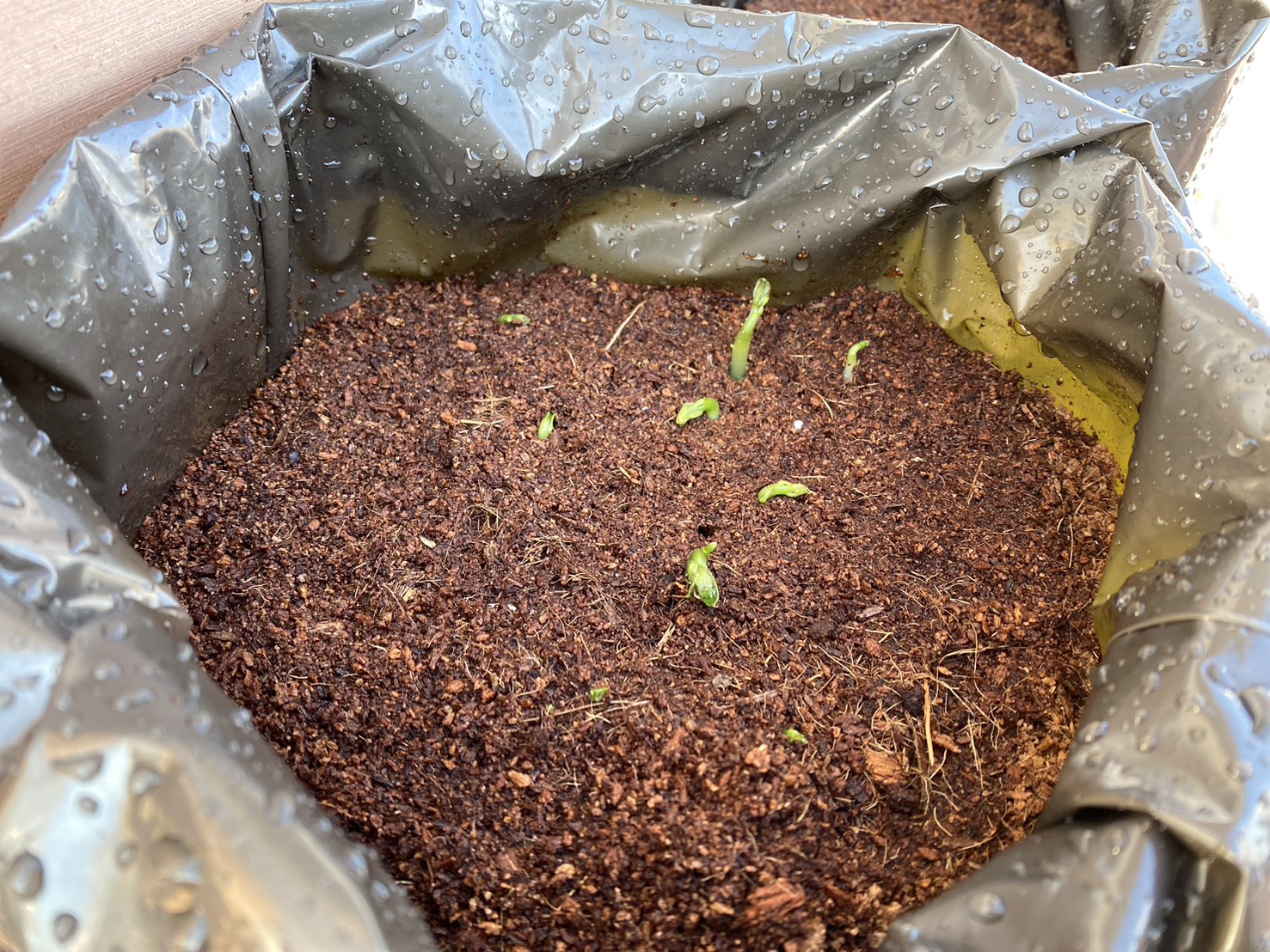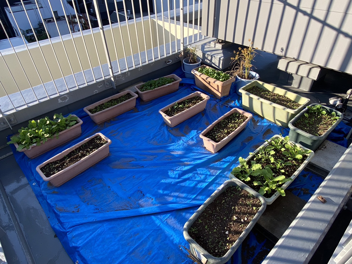 屋上で種を植えて半月ほど経ちました。 春~夏ではなくて秋~冬なので、成長してくれるかな…という心配をよそに
